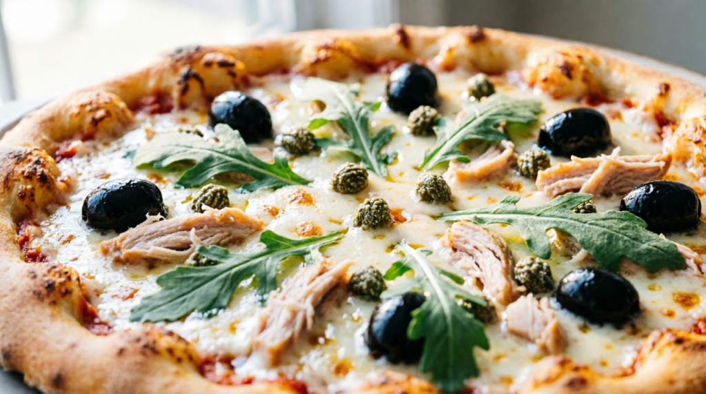 Quando você pensa em pizza, provavelmente vem à mente aquele prato irresistível, cheio de queijo mussarela derretido e massa branca macia, certo? Então vamos trocar a farinha refinada por opções integrais ou low carb, fazendo uma Pizza Saudável de Frango com Mussarela e manjericão de gorduras saturadas reduzidas e aumentando as proteínas, para transformar completamente o perfil nutricional desta receita.
