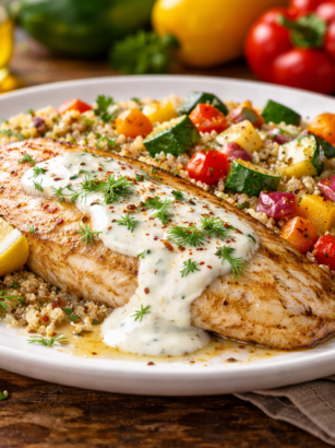 Tilápia Assada ao Molho de Iogurte com Quinoa e Legumes Se você está buscando uma refeição equilibrada, nutritiva e ao mesmo tempo cheia de sabor, essa receita de tilápia assada ao molho de iogurte com …